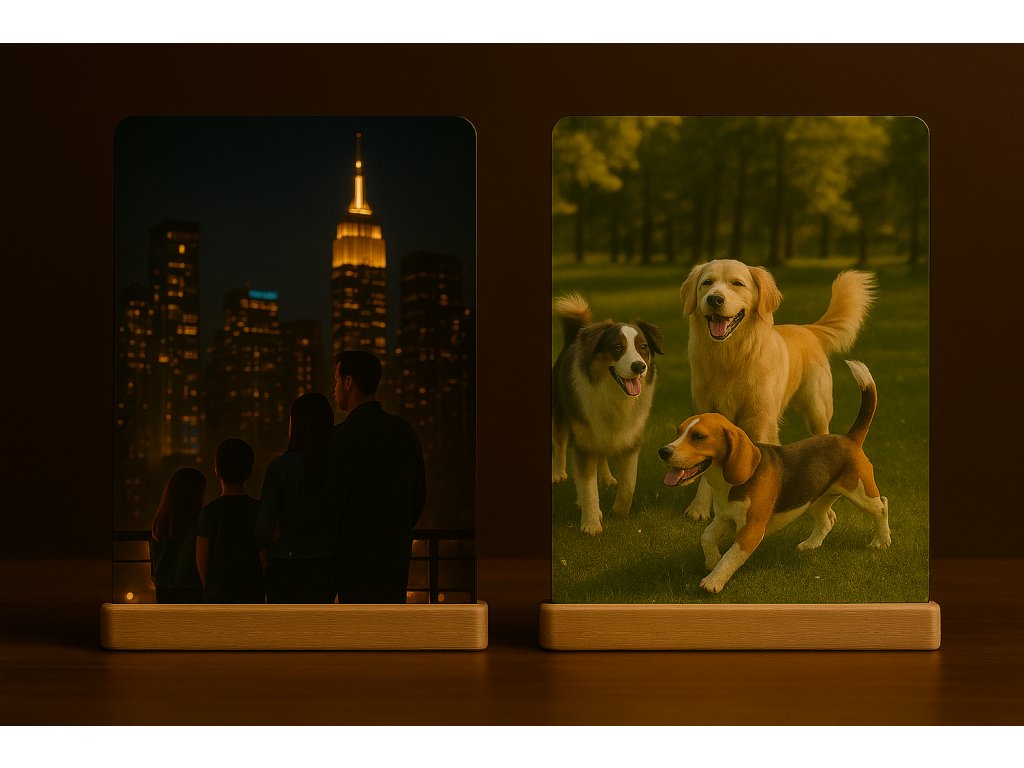 Fotografie na hliníkové desce s dřevěným podstavcem