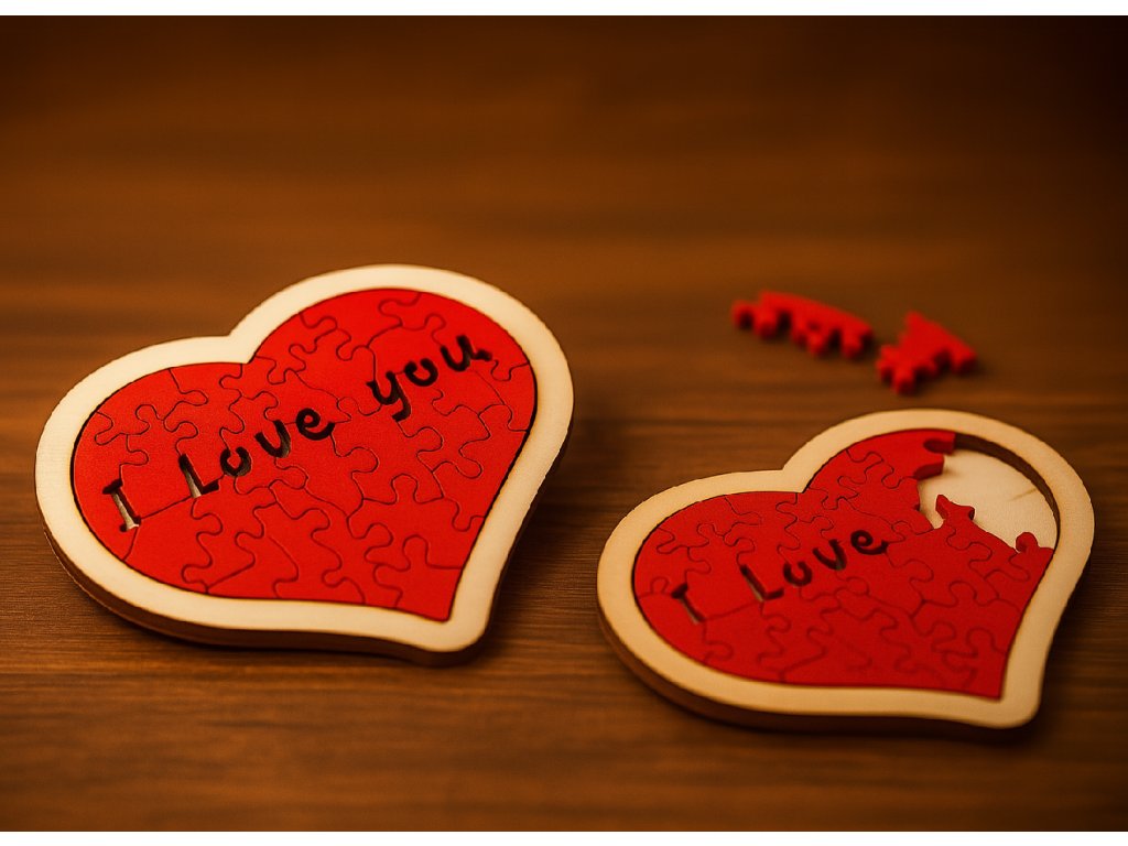Toto krásné puzzle ve tvaru srdce a nápisem I LOVE YOU uprostřed je ideální dárek pro partnerku či partnera
